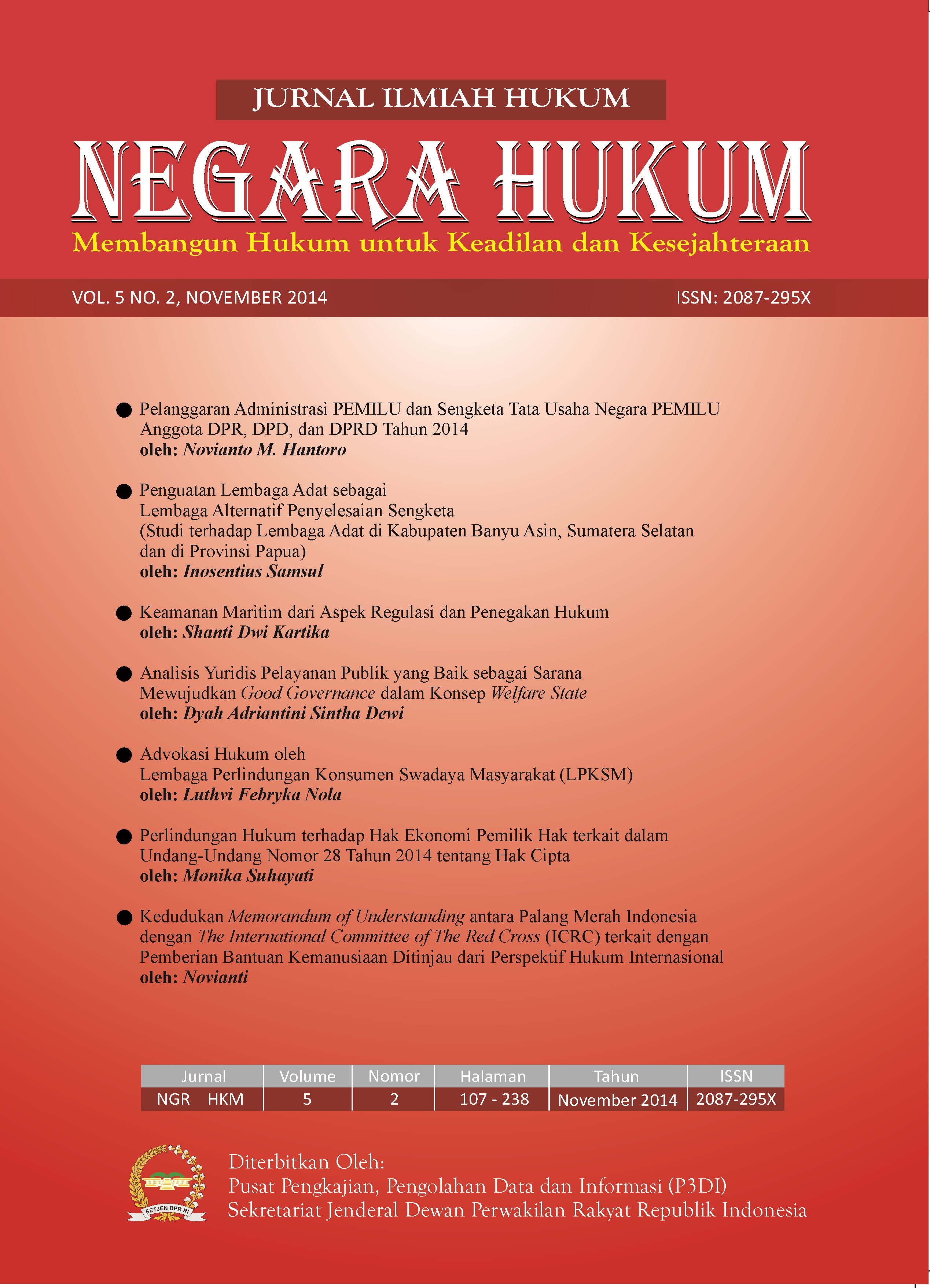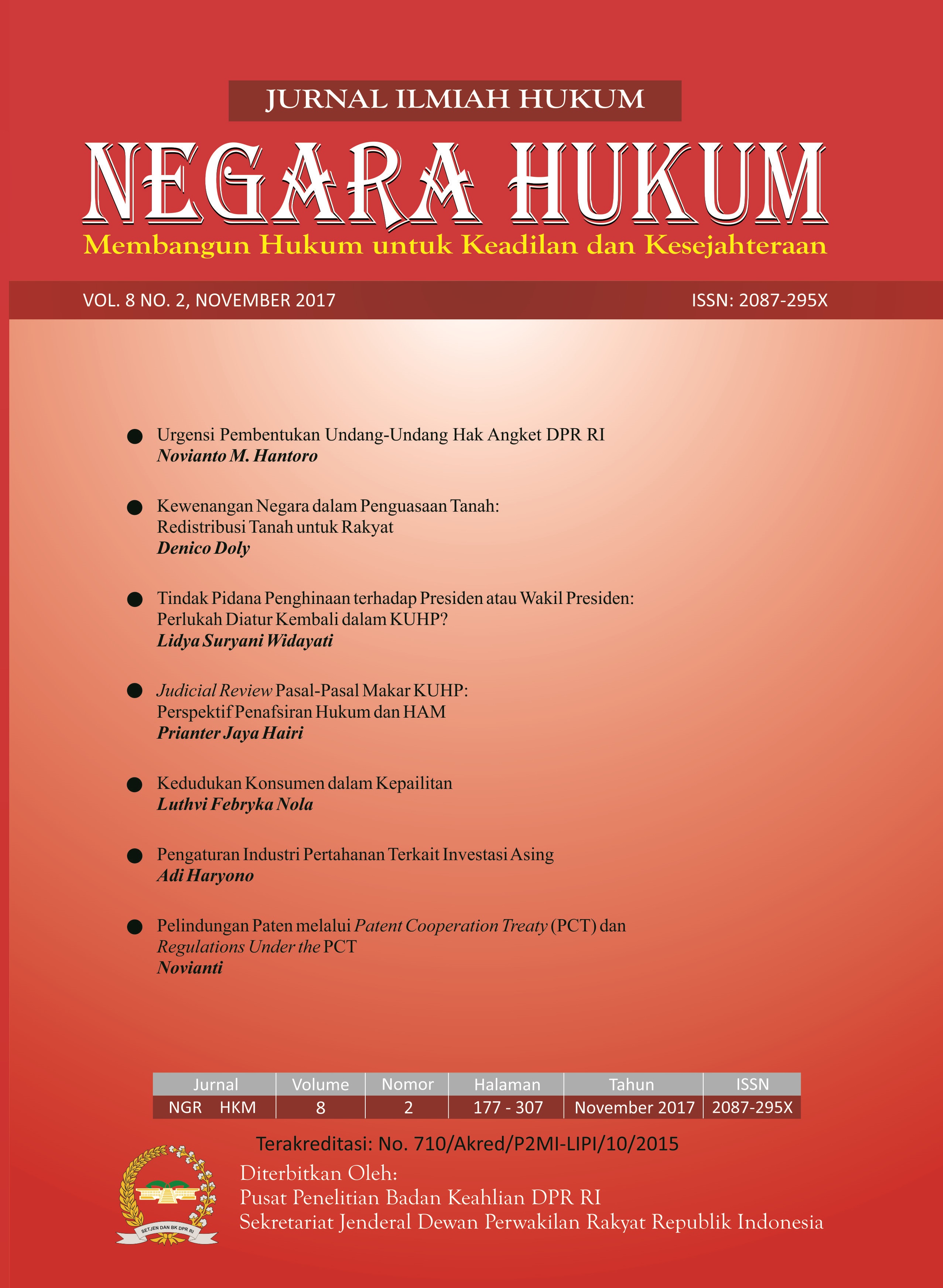 | Vol 9, No 2 (2018): JNH VOL 9 NO. 2 November 2018 | Esensi Dan Sinkronisasi Pengaturan Mengenai Persetujuan Presiden Dalam Proses Pidana Anggota DPR, Hakim Agung, Hakim Konstitusi, Dan Anggota BPK | Abstract PDF |