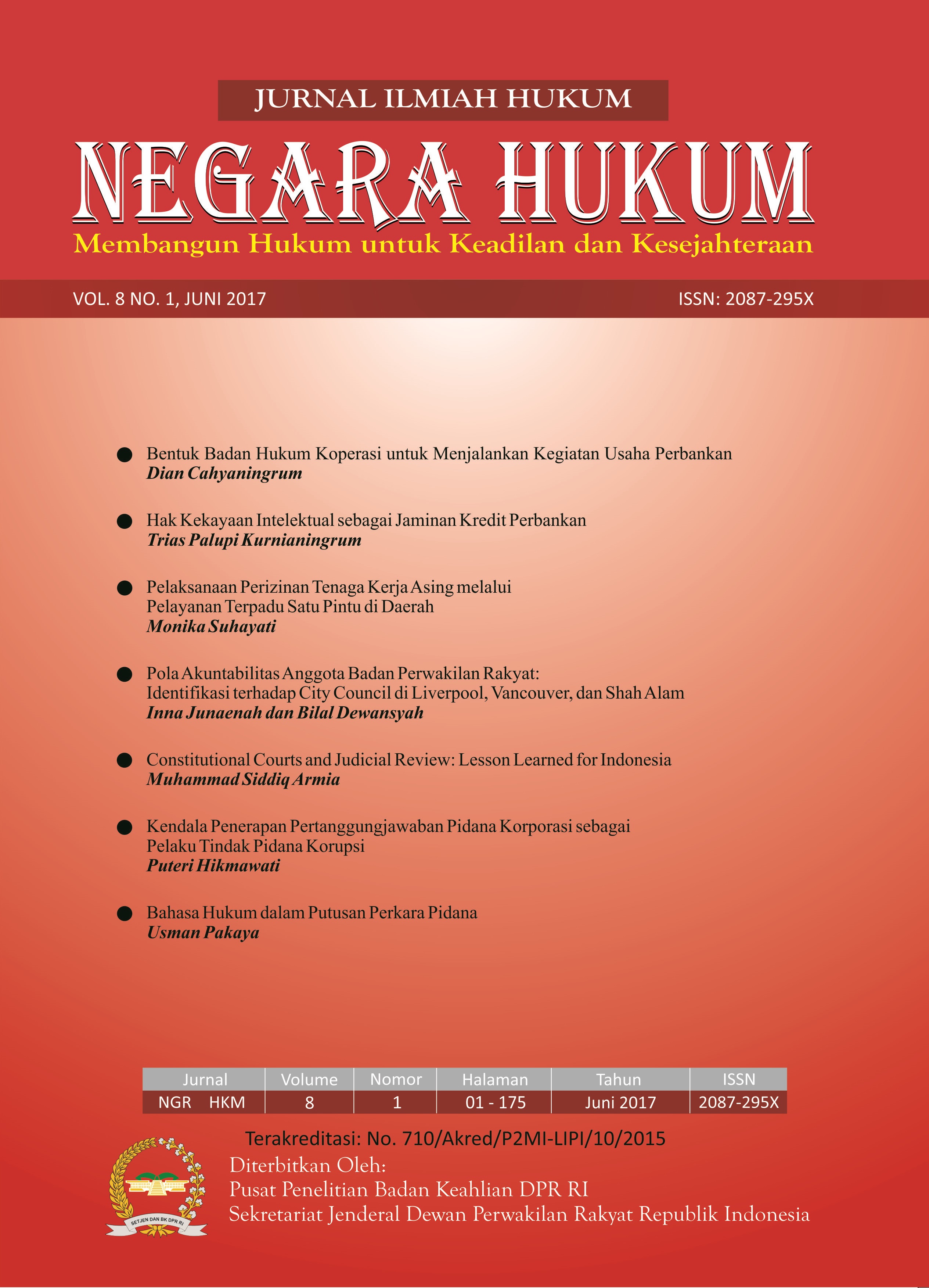 | Vol 8, No 1 (2017): JNH VOL 8 NO. 1 Tahun 2017 | HAK KEKAYAAN INTELEKTUAL SEBAGAI JAMINAN KREDIT PERBANKAN (INTELLECTUAL PROPERTY AS BANKING CREDIT GUARANTEE) | Abstract PDF |